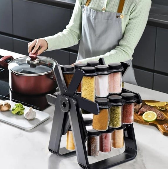 Rangement Epices – 18 bouteille en verre incassable
